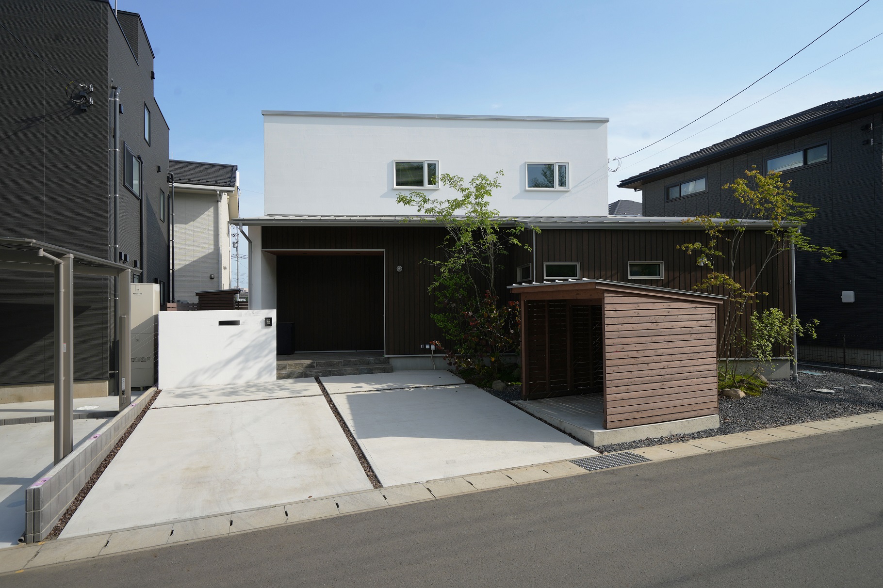 内容 | 居場所を緑が囲む家 住宅地に建つ2階建ての住まい。 北側に広がる公園とのつながりを意識し、植栽や木板張りの外観によって、まちの緑とゆるやかに溶け合うような印象をつくっています。 リビングは吹抜けを設けて開放的に、対して畳スペースは落ち着いてこもれるように、それぞれの過ごし方に合わせた空間構成としています。 木の塀と豊かな植栽に囲まれた庭は、ウッドデッキとLDKの境界を曖昧にし、室内にいながらも緑を感じられる心地よい住まいとなっています。 ぜひ見学会にご参加いただき、ニュースタ自慢の住宅をご体感ください。 |