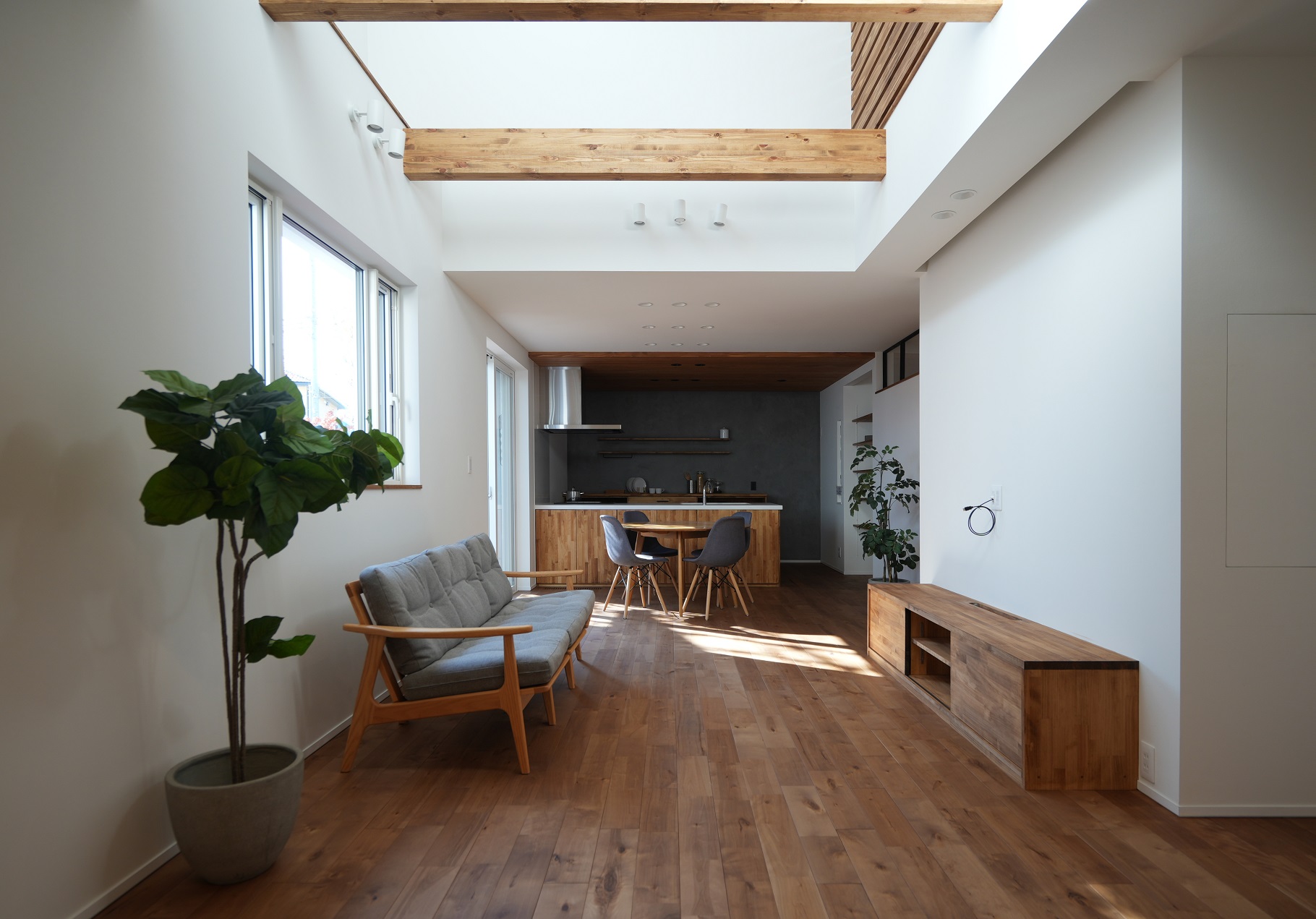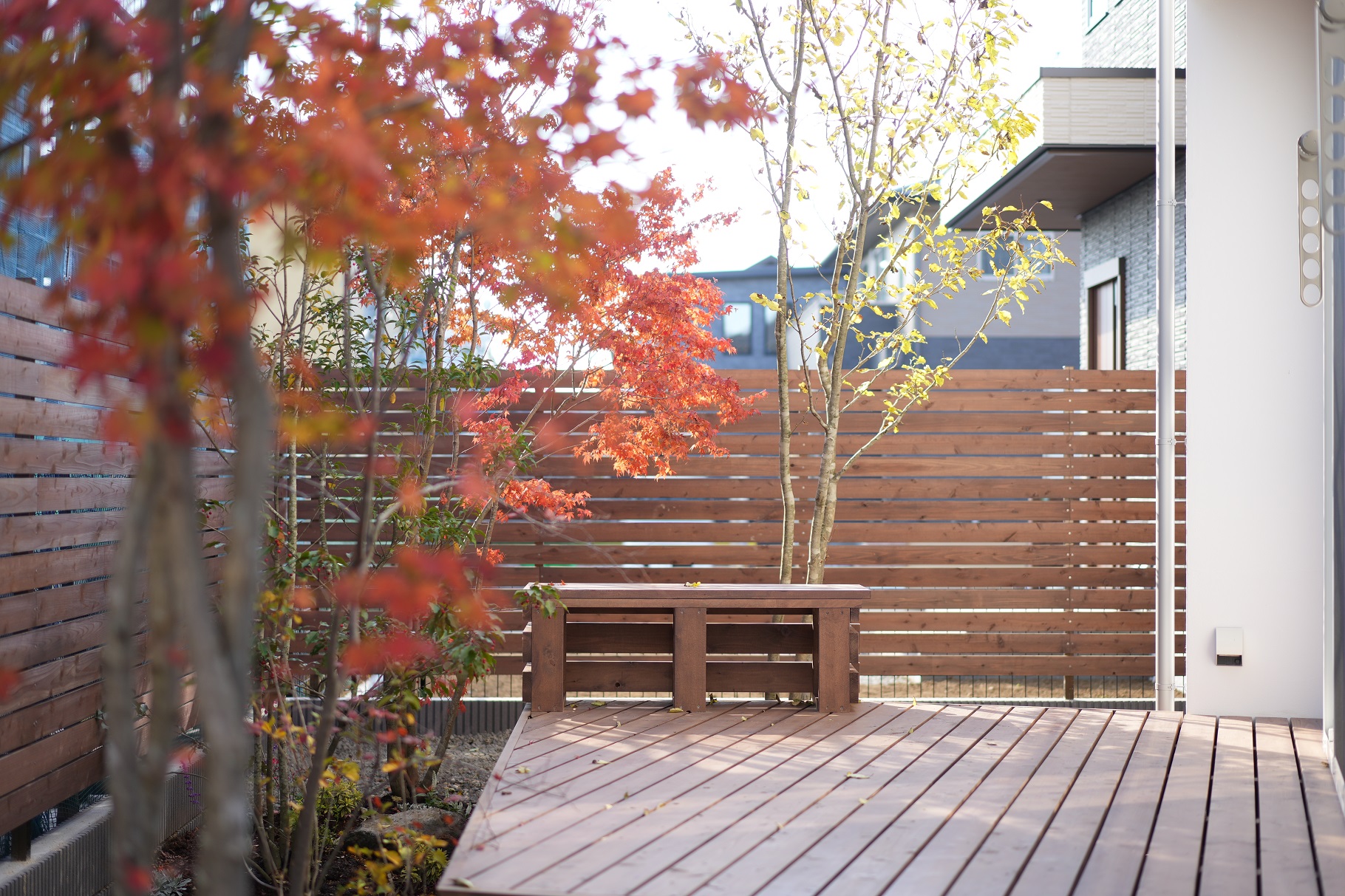 内容 | 居場所を緑が囲む家 住宅地に建つ2階建ての住まい。 北側に広がる公園とのつながりを意識し、植栽や木板張りの外観によって、まちの緑とゆるやかに溶け合うような印象をつくっています。 リビングは吹抜けを設けて開放的に、対して畳スペースは落ち着いてこもれるように、それぞれの過ごし方に合わせた空間構成としています。 木の塀と豊かな植栽に囲まれた庭は、ウッドデッキとLDKの境界を曖昧にし、室内にいながらも緑を感じられる心地よい住まいとなっています。 ぜひ見学会にご参加いただき、ニュースタ自慢の住宅をご体感ください。 |