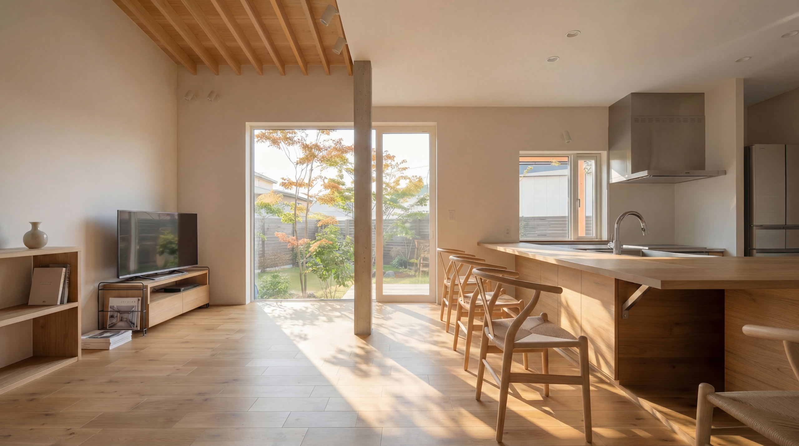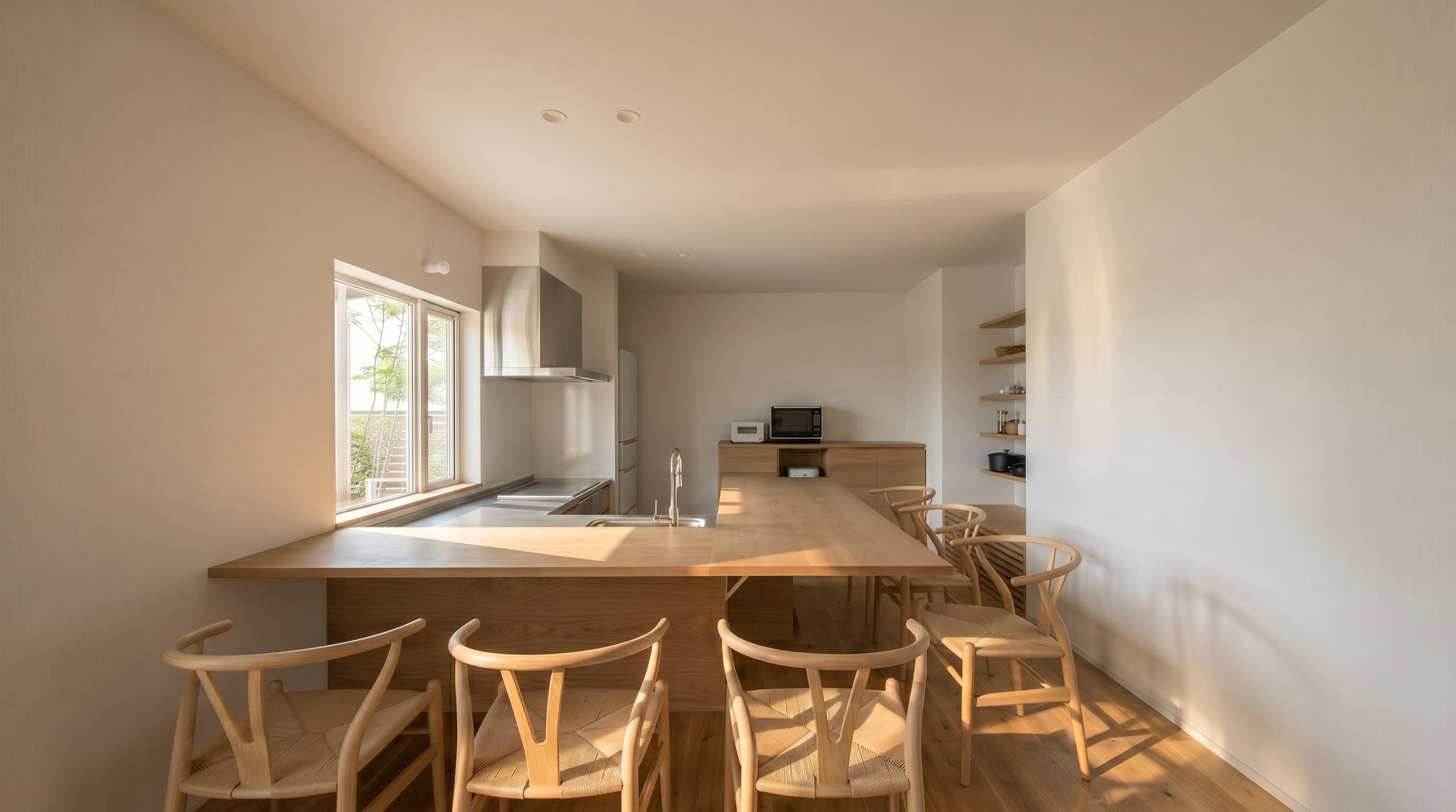 | 内容 | 「とじるとひらく」 内にこもる安心感と、外へひらく心地よさ。 その両方を大切にした住まいです。 L字型の造作キッチンは、外に向いたカウンターが暮らしの中心に。 食事をしたり、会話を楽しんだり、日常が自然とひらいていきます。 一方でリビングは、勾配天井と構造あらわしの伸びやかな空間。 デッキへとつながり、外で食事を楽しむ時間も暮らしの一部に。 内と外、閉じると開くを行き来しながら、 その時の気分に寄り添う居場所が見つかる住まいです。 ぜひ現地で、この心地よさをご体感ください。 |