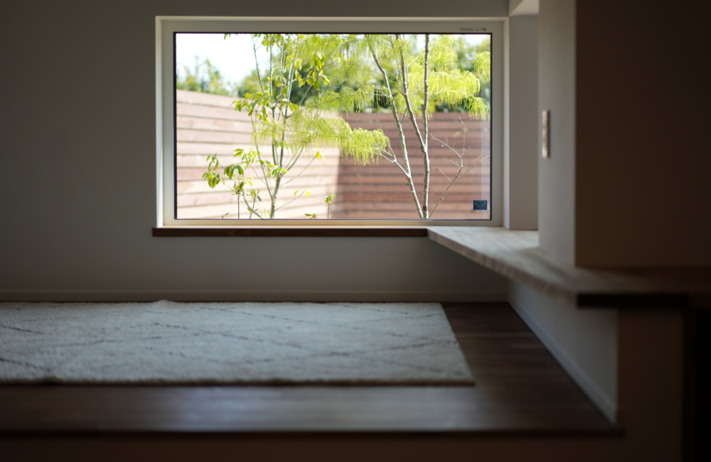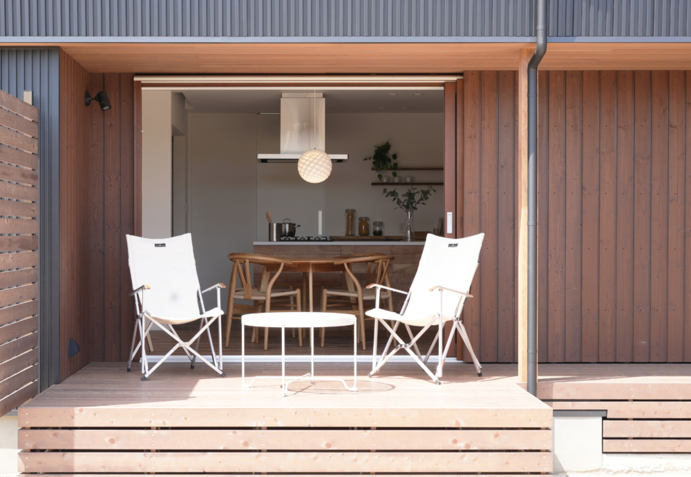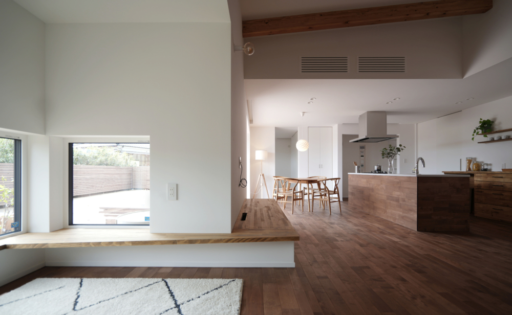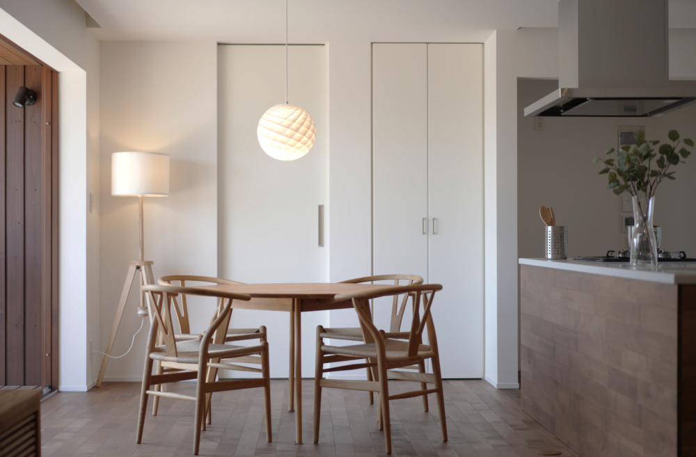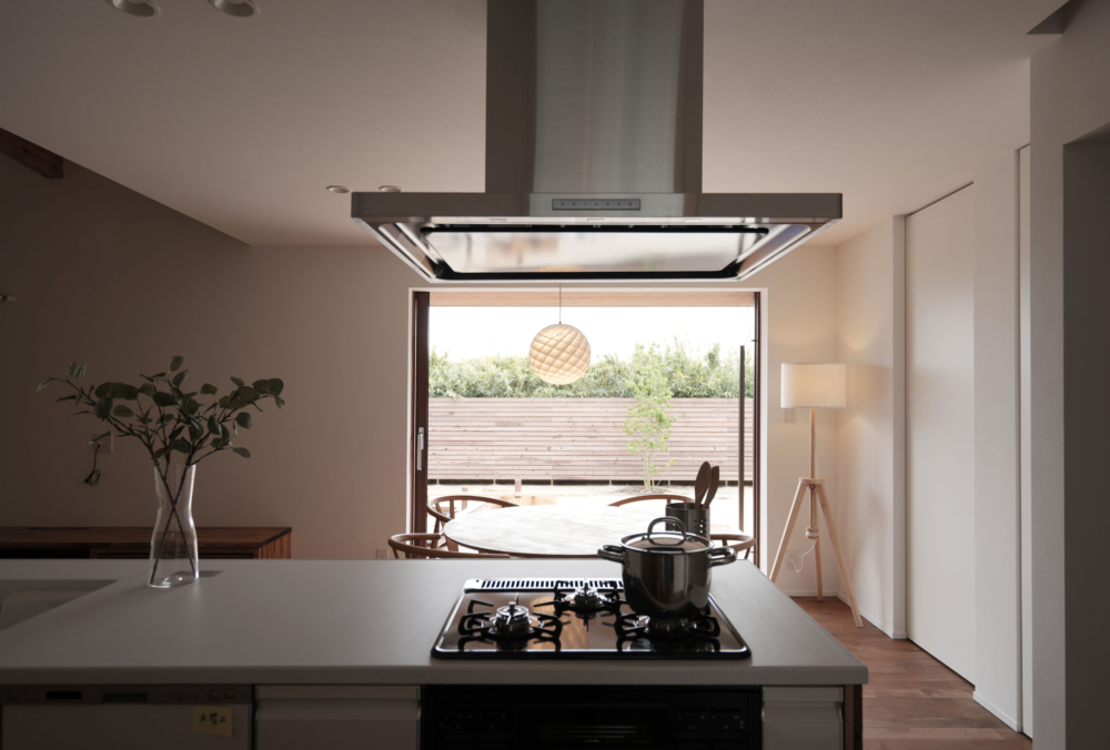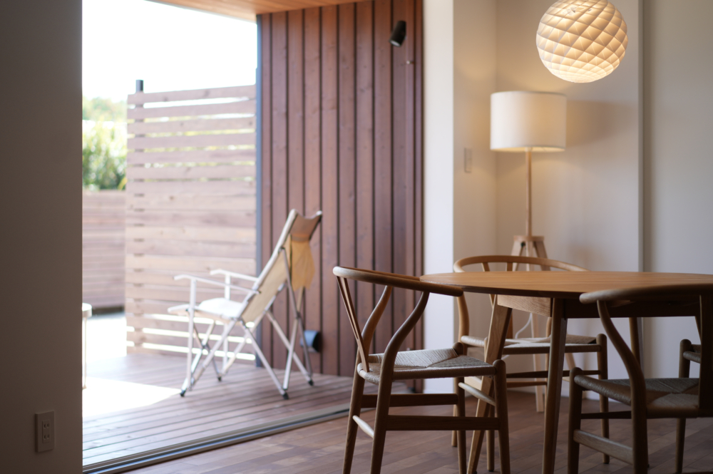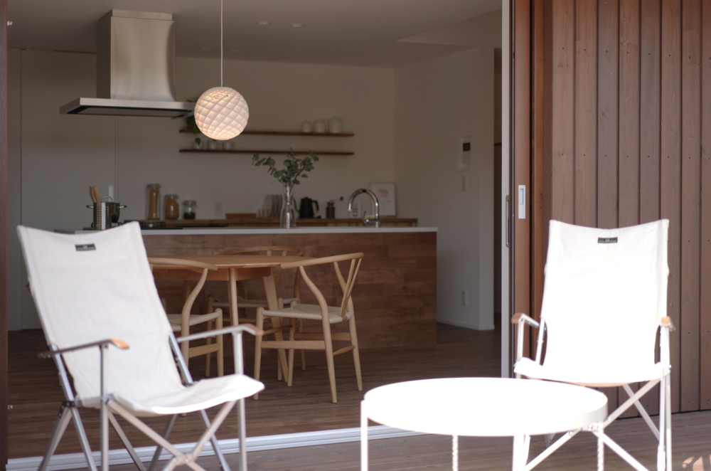 大開口のヘーベシーベ窓が、ダイニングに光と風を呼び込み、室内外の境を感じさせない開放感を生み出します。